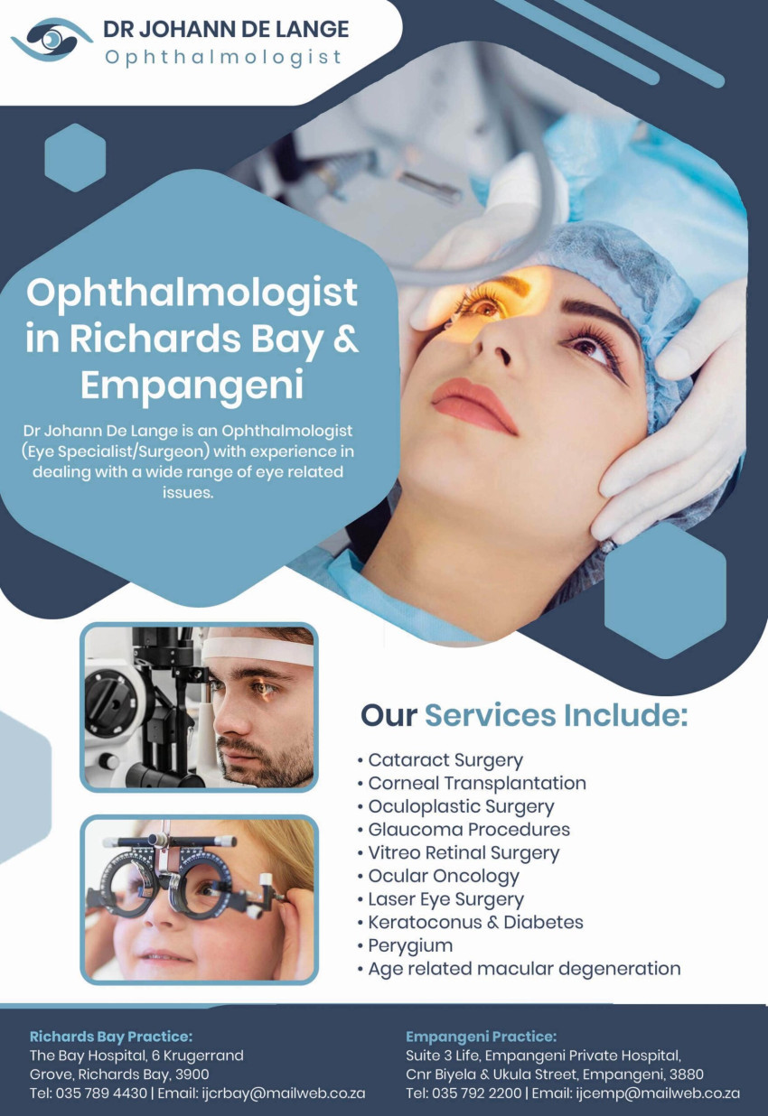 Dr Johann De Lange is an Ophthalmologist (Eye Specialist/Surgeon) with experience in dealing with a wide range of eye related issues